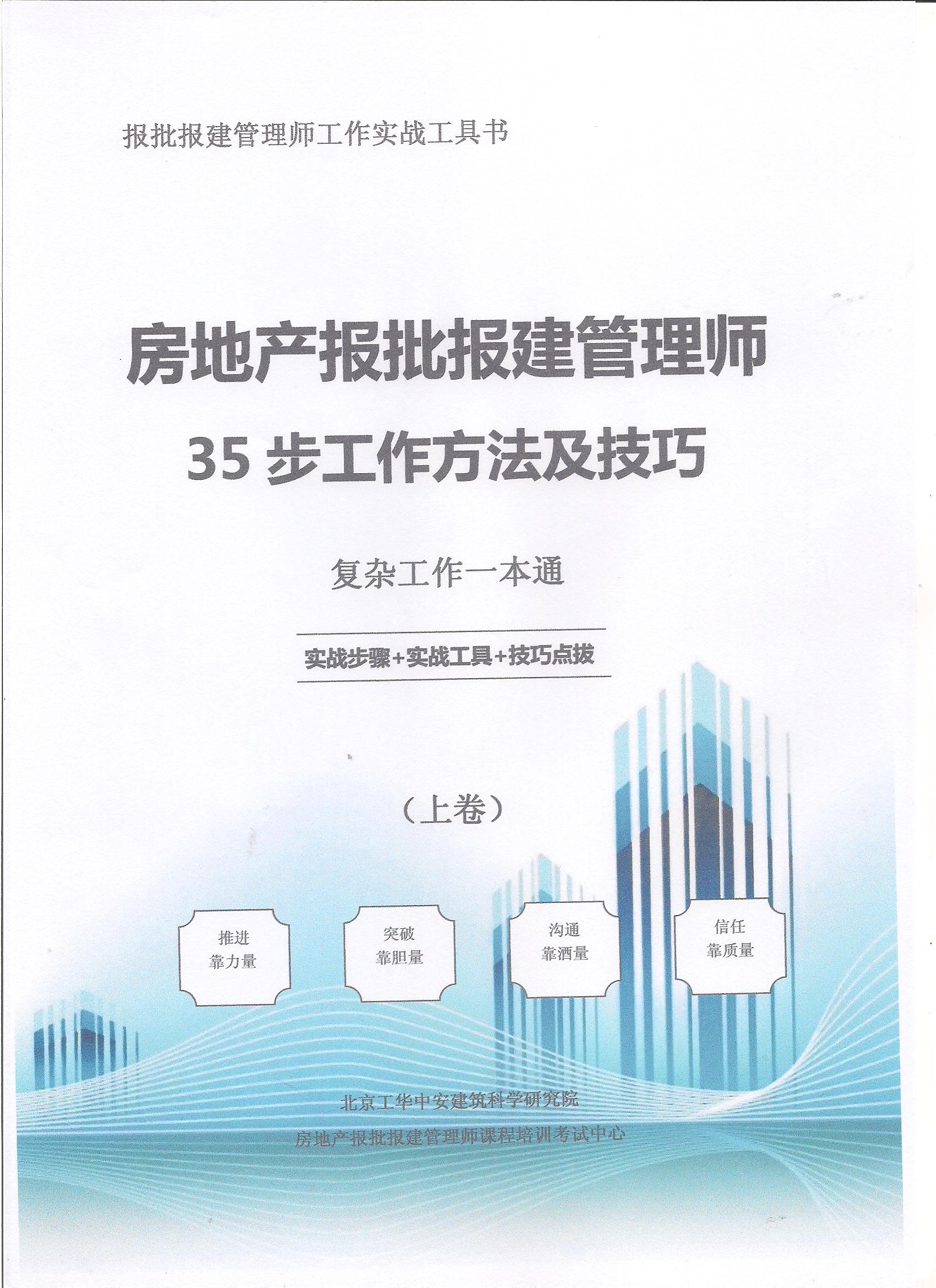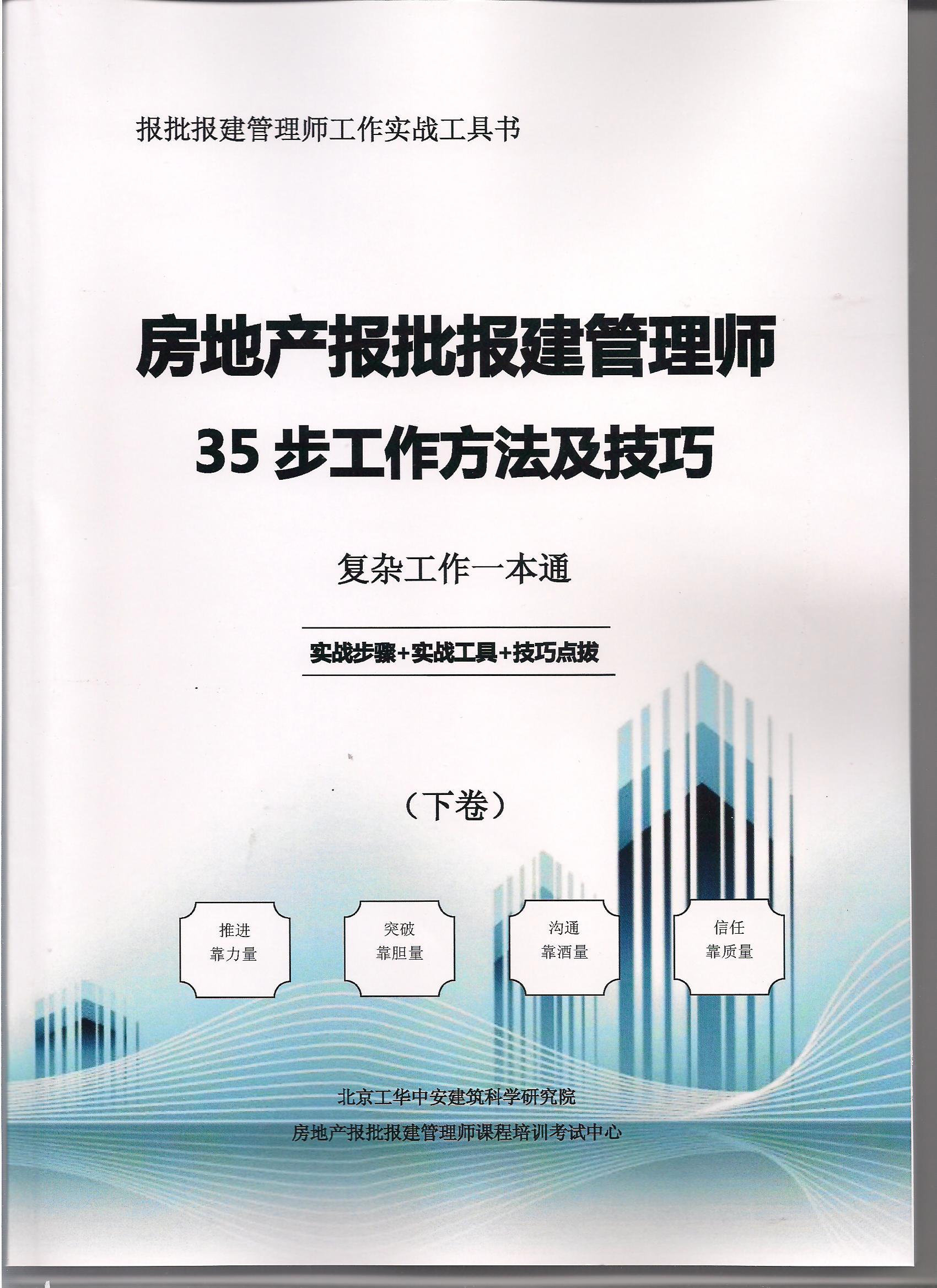 四、专业的培训教材:颁发房地产报批报建管理师实战工具书一套三本,《房地产报建管理师35步工作方法及技巧》上下2册, 《房地产报建管理师报建实务全攻略》1册。