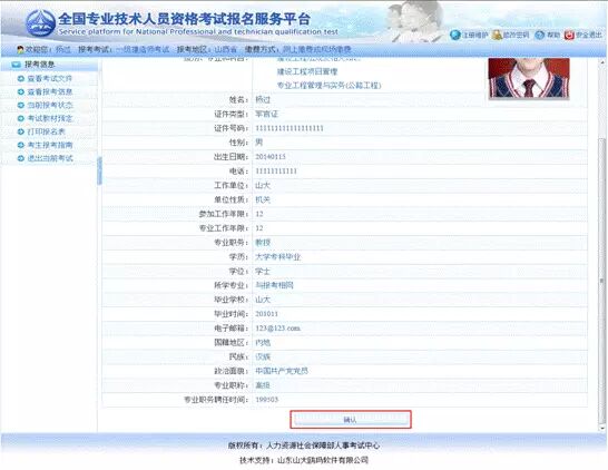 重要提示:报名信息一旦确认就不能更改,请考生仔细核对后再进行报名信息确认操作。