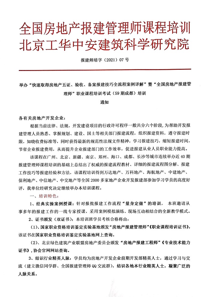 2021年全国报建管理师第59期培训5月29-30日在成都开课