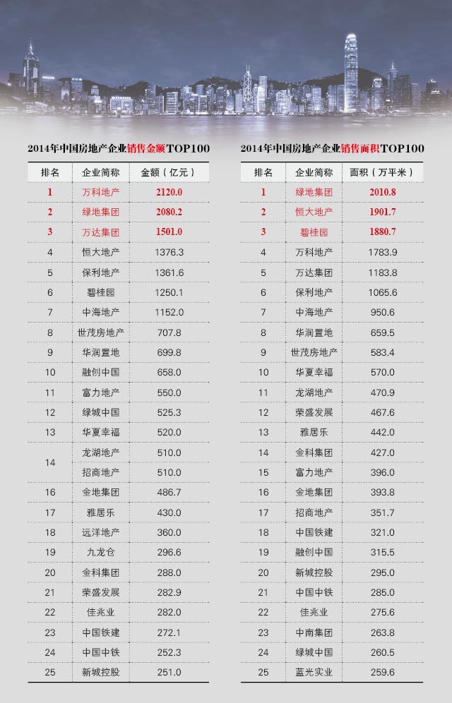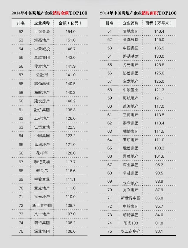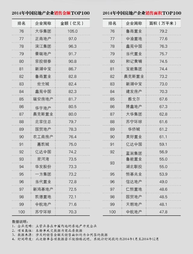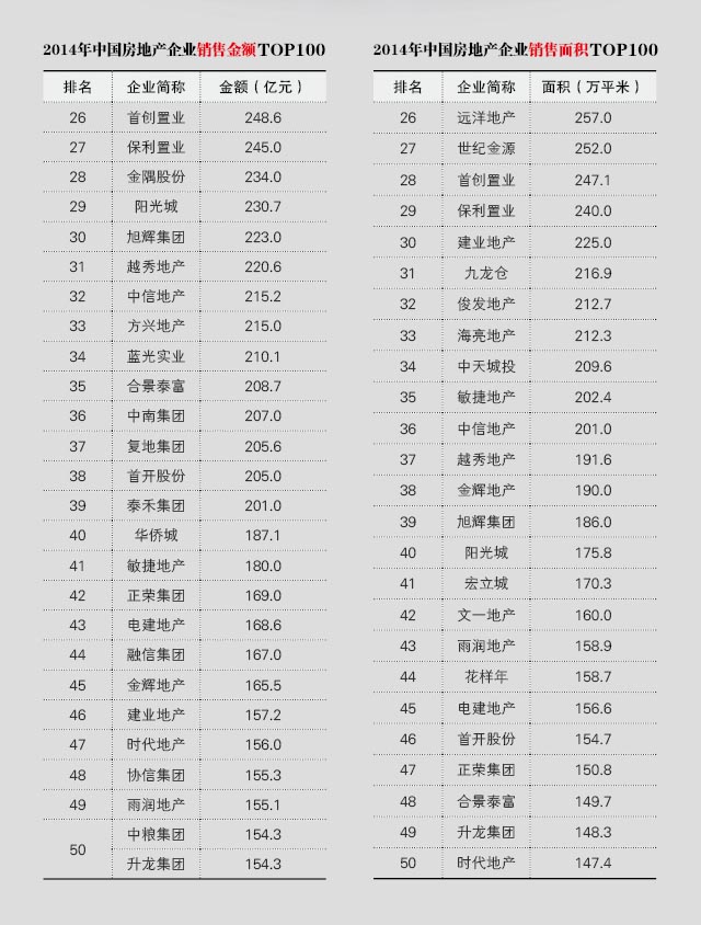 一、2014房地产企业销售金额&销售面积TOP100